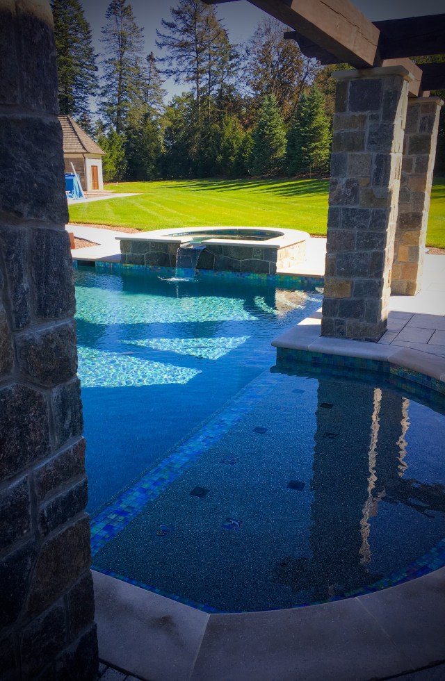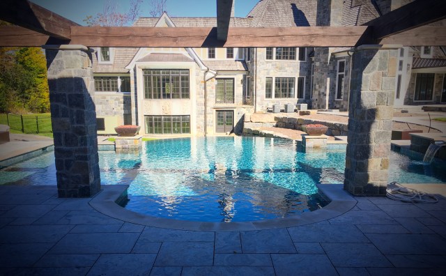 Hard surfaces, pool, spa, terrace and a charming pool house are all part of this outdoor oasis. The owners are gearing up for phase II in the construction process to complete this gorgeous outdoor living space.